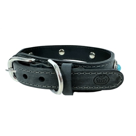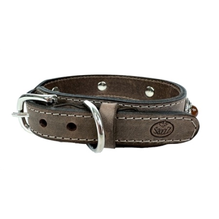 Sazzz halsband hond boho treasure stone vintage leer antraciet