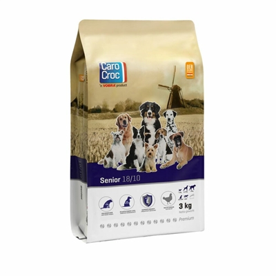 Complete geëxpandeerde zeer licht verteerbare brokken voor oudere honden van alle rassen. In deze smakelijke en licht verteerbare voeding is rekening gehouden met de lagere eiwit en mineralen behoefte van oudere honden. Dit is nodig om de stofwisselings- en verteringsorganen goed te laten functioneren en de nieren niet te overbelasten. Bevat extra Omega 3 en 6. Carocroc Senior is bovendien zeer geschikt voor honden met spijsverterings- en nierstoornissen.