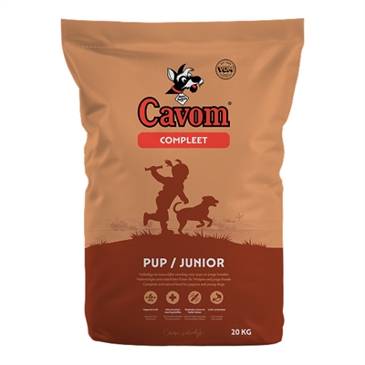 Cavom Compleet Pup/Junior 20 kg is volledige voeding voor puppy’s en opgroeiende honden. Deze smakelijke hondenbrokken zijn speciaal ontwikkeld voor honden pups vanaf 4 weken tot 9 maanden oud. Jonge honden groeien heel snel. Cavom Compleet Pup/Junior bevat alle nodige voedingstoffen in de juiste verhouding om deze snelle groei op te vangen. De granen, o.a. mais, tarwe en rijst, zijn praktisch geheel ontsloten. De diverse dierlijke eiwitten met rund en lam, plantaardige eiwitten, rundvet en oliën zorgen voor een hoge calorische waarde. Eerst het voer weken met melk, later met karnemelk of water. Geleidelijk minder vocht toevoegen.