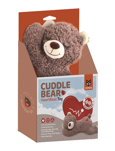 De Fofos Heartbeat Beer is een pluche hondenknuffel met hartslag simulator om de puppy rustig en ontspannen in slaap te laten komen.