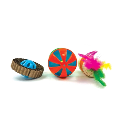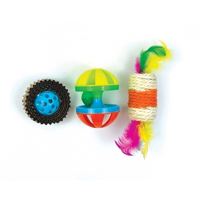 De Happy Pet Tabby Patch Ratel/Roller/Krabspeeltje is een veelzijdig kattenspeeltje dat verschillende spelelementen combineert in één compact ontwerp. Het speeltje rolt over de vloer, maakt geluid door de ratel en biedt een structuur die uitnodigt tot krabben en ontdekken. Door de combinatie van vormen en materialen is dit speeltje geschikt voor afwisselend speelgedrag en zelfstandig spel.