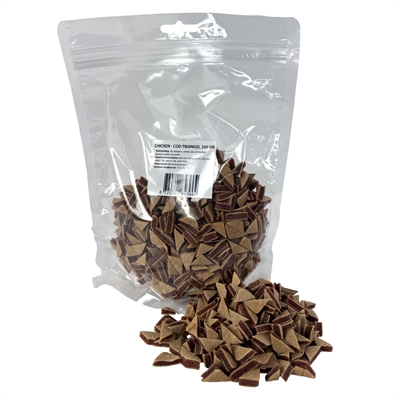 De I Am Chicken & Codfish Triangel Sandwich is een smakelijke beloning voor honden, met de onweerstaanbare combinatie van kip en kabeljauw. Deze sandwichachtige snack heeft een zachte structuur en is door de handige driehoekvorm makkelijk te breken in kleinere stukjes. Ideaal als tussendoortje of beloning tijdens training.