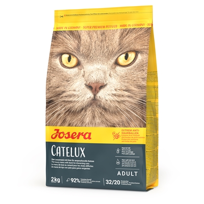 De Josera Catelux is een complete voeding voor volwassen katten die echte fijnproevers zijn en tegelijkertijd gevoelig kunnen zijn voor haarbalvorming. Deze smakelijke brok combineert eend en aardappel tot een aantrekkelijke maaltijd die veel katten graag eten. Dankzij het verhoogde gehalte aan voedingsvezels ondersteunt deze voeding de natuurlijke afvoer van ingeslikte haren en is het daardoor bijzonder geschikt voor katten met een neiging tot haarballen. De uitgebalanceerde samenstelling sluit goed aan bij de dagelijkse voedingsbehoefte van volwassen katten en biedt een combinatie van smaak en functionaliteit, zonder de spijsvertering onnodig te belasten.