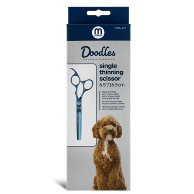 De Mikki Doodle Effileerschaar Enkel 16,5 cm is een ideale schaar om thuis de vacht van jouw doodle te trimmen. Regelmatig trimmen voorkomt vervilting en houdt je huisdier schoon. Met deze effileerschaar van Mikki kun je dit ook thuis doen! Deze schaar is uitermate geschikt om de dikke vacht uit te dunnen en voor een gemêleerde afwerking van de vacht. Borstel de vacht goed door voordat je begint en geef je huisdier pauzes tijdens het trimmen om ongemak te voorkomen.