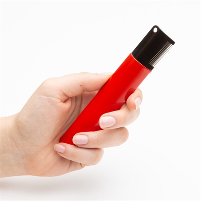 Het Mikki Classic Trimmes Fijne Vacht is de ideale tool om thuis de vacht van jouw hond uit te dunnen. Met dit trimmes creëer je de look van een handgestripte vacht, zonder de pijn en het ongemak dat gepaard gaat met strippen met de hand. Het mes heeft fijne tanden, ideaal voor het blenden en afwerken van de vacht. Daarbij is het mes voorzien van Tefloncoating om de opbouw van statische elektriciteit te verminderen.