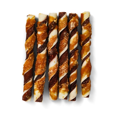 • Gemaakt van runderhuid met een omhulsel van geroosterde kip