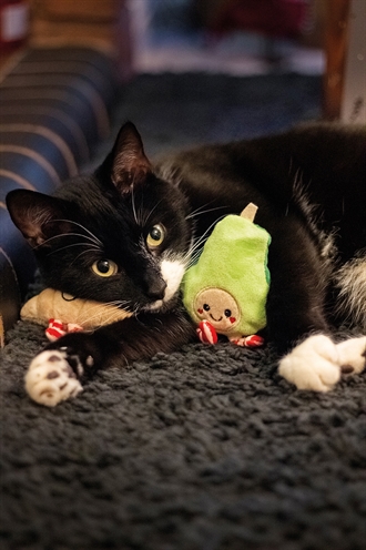 – Schattig kattenspeelgoed in de vorm van een avocado en croissant