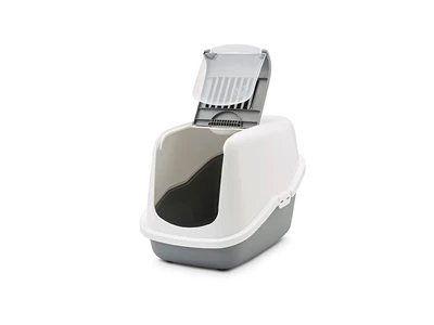 De Savic Kattenbak Nestor Grijs/Wit 56X39X38,5 cm is een ruime kattenbak met kap in modieuze kleuren met eenvoudig kliksysteem om snel de bak te verschonen. Kattenbakken zijn natuurlijk functioneel, maar deze mooi gevormde kattenbak van Savic heeft ook nog modieuze kleurstelling. Het deurtje kan samen met het binnenste gedeelte van de bovenzijde in een handomdraai los te geklikt worden. Hierdoor hoef je niet meer de complete bovenzijde van de onderbak los te maken om de bak schoon te maken. Het los geklikte gedeelte duw je eenvoudig omhoog, waardoor je makkelijk bij de inhoud kan.
