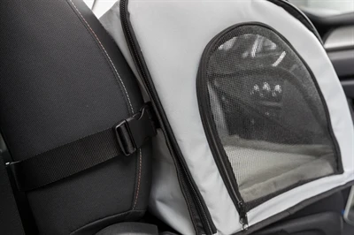 – Gesloten frame van polyester met gaas inzetstukjes, de hond kan niet door de auto bewegen
