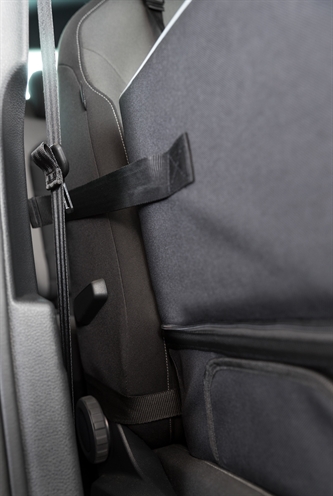 – Voorzien van bevestigingsgordels en uitsparing voor veiligheidsriem hond