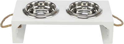 Trixie be nordic set voerbak / waterbak hout / rvs wit