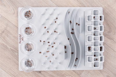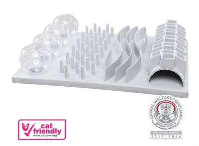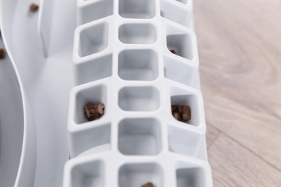 Het uitdagende Trixie Cat Activity Fun Bord bordspel bevat vijf verschillende spellen waarmee je jouw kat kunt uitdagen om op een speelse manier een snack te verdienen. Leg een snack of brokje in de tunnel, in een vakje, een gleuf, tussen de pinnen of in een van de bakjes. De kat zal zijn pootjes en behendigheid moeten gebruiken om de beloning te pakken te krijgen. Dit is ook te doen met gewoon voer, waardoor je kat langer bezig zal zijn met eten en dus minder de kans heeft zijn voer naar binnen te schrokken.