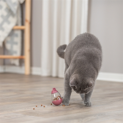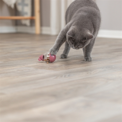 – Wiebelt heen en weer, zodat de kat snoepjes door de gaten naar buiten kan krijgen