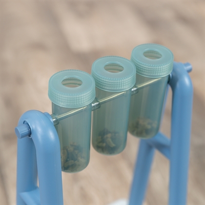 – Met drie draaibare elementen die snoepjes of brokjes loslaten