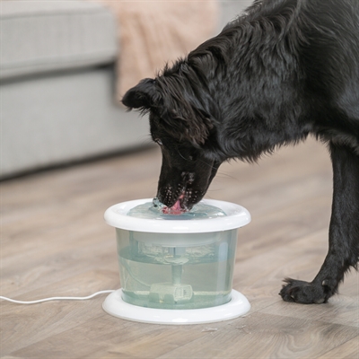 De Trixie Drinkfontein Bubble Stream is een ruime en gebruiksvriendelijke drinkoplossing voor honden en katten. Met een inhoud van 3 liter en constante watercirculatie biedt deze fontein zuurstofrijk water dat van nature koeler blijft. Het transparante reservoir geeft je goed zicht op de inhoud, zodat je op tijd kunt bijvullen. Dankzij het actieve koolfilter (inclusief 2 reservefilters) wordt het water gezuiverd van smaakjes en onzuiverheden, waardoor je huisdier sneller en liever drinkt. De pomp is verwisselbaar en werkt stil en energiezuinig via een USB-aansluiting of voedingsstekker. De bovenkant van de fontein is bovendien vaatwasserbestendig voor eenvoudig schoonmaken. Vervangende filters zijn los verkrijgbaar.