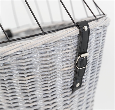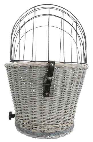 Met de Trixie Fietsmand Bagagedrager Met Rooster Grijs 55X35X49 cm gaat jouw hond comfortabel en veilig met jou mee op al jouw fietstochten. Deze leuke rieten mand is gemaakt van gevlochten wilgentenen in een frisse, zomerse lichtgrijze kleur. De mand is voorzien van een rooster om te voorkomen dat de hond onderweg uit de mand kan springen. De mand kan op bagagedragers met een breedte van 10,5 – 14,5 cm bevestigd worden, zodat je jouw stuur vrij houdt om comfortabel te sturen. Het bijgeleverde kussen met velours-overtrek zorgt voor een comfortabele rit voor jouw dier.