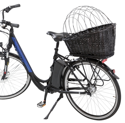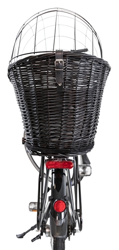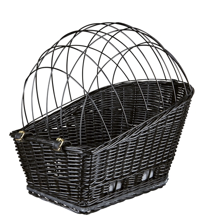 Met de Trixie Fietsmand Met Draadkoepel Achterop Zwart 35X49X55 cm gaat jouw hond comfortabel en veilig met jou mee op al jouw fietstochten. Deze leuke mand is gemaakt van gevlochten wilgentakken in een frisse, lichtgrijze kleur. De mand is voorzien van een rooster om te voorkomen dat de hond onderweg uit de mand kan springen. De mand is te bevestigen op de bagagedrager en bevat een kussen met grijs velours overtrek.