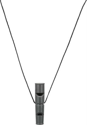 De Trixie Hondenfluit Dubbeltoon Kunststof Assorti 7,5 cm is een tweetonige fluit met fluit- en tjilptoon, ideaal voor trainen over grote afstanden voorzien van koord. Omdat de fluit twee diverse tonen heeft, is hij ideaal om meerdere commando's te trainen. Door het volume en de frequentie van de tonen kan dit bovendien ook over grote afstanden, dus ook buiten in het veld, bos of op het strand. De fluit is van kunststof en voorzien van een koord om hem bijvoorbeeld om de nek te hangen.