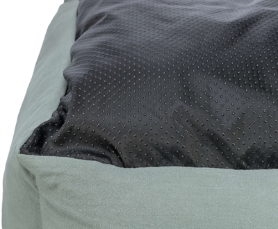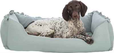 De Trixie Hondenmand Amelie Hoekig Saliegroen 60X50 cm is een origineel hondenbed van linnen stof met vast geïntegreerd kussen en slipvaste onderkant.