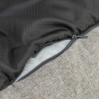 De afneembare hoes kan gewassen worden in de wasmachine op 40 graden, de vulling kan met de hand gewassen worden. De antislip onderkant en het vast geïntegreerde kussen zorgen ervoor dat de mand stevig blijft liggen.