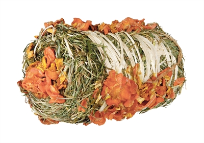 De Trixie Hooibaal Pompoen En Wortel 18 cm is een heerlijke, natuurlijke snack voor konijnen en knaagdieren uit ruwvoer, met hooi en lekkere pompoen en wortelstukjes omwikkeld met henneptouw. Helemaal graanvrij! Deze leuke hooirol is een gezonde snack voor jouw knaagdier die de tandverzorging ondersteunt en verveling tegengaat. Dit kleine hooibaaltje bestaat uit heerlijk vers hooi met pompoen en wortel en omwikkeld met henneptouw. Jouw dier kan naar hartenlust knagen aan deze lekkere baal, wat verveling tegengaat, een correcte darmwerking ondersteunt en helpt bij de correcte afslijting van de tanden. Een zeer gezonde, natuurlijke snack die graanvrij is en geen toegevoegde suikers bevat!