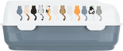 De Trixie Kattenbak Delio Paars / Wit van 48 x 35 x 20 cm is een praktische open kattenbak met hoge rand en rooster, voorzien van een leuke print. Ideaal voor baasjes en katten die fan zijn van open kattenbakken! Deze kattenbak is voorzien van alle voordelen van een open kattenbak, en creëert tegelijk zo min mogelijk troep. De bak is voorzien van een verhoogde rand die voorkomt dat de kattenbak vulling uitgegraven wordt, en van een rooster bij de instap dat ervoor zorgt dat de kat zo min mogelijk kattenbakvulling aan de pootjes mee naar buiten neemt. Door de handige clips is de rand eenvoudig van de bak te verwijderen, voor gemakkelijke reiniging. Met een leuke print van katjes op de zijkant.