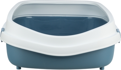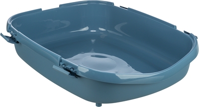Trixie Kattenbak Primo XXL Met Rand Blauw/Wit 71X56X25 cm is een open kattentoilet voor grote katten, met afneembare rand met Easy Click-sluitingen.