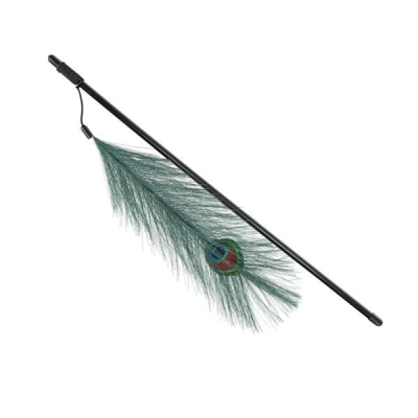 Trek de aandacht van jouw kat door de veer voor zijn neus heen en weer te bewegen en te schudden. Maak onverwachte bewegingen waardoor de kat nog meer zijn aandacht vestigt op de pauwenveer. Jouw kat zal uren speelplezier hebben met de hengel, maar nog belangrijker: speelplezier met jou!