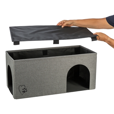 De Trixie Kattenmand/Kattenhuis Kimy Soft Twee Verdiepingen Lichtgrijs is een knus en stijlvol onderkomen voor katten die graag kiezen tussen rust, hoogte en geborgenheid. Het huis bestaat uit twee comfortabele verdiepingen, beide voorzien van een zacht pluche kussen waar je kat heerlijk op kan ontspannen. Dankzij de stevige MDF-platen en de geweven polyester bekleding staat het huis stabiel, terwijl het toch eenvoudig opvouwbaar is wanneer je extra ruimte wilt besparen. Een fijne combinatie van comfort, gebruiksgemak en een rustige uitstraling in huis.