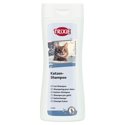 De Trixie Kattenshampoo van 250 ml shampoo voor de kat die mild verzorgt en revitaliseert, met camille extract. Ook katten moeten wel eens gewassen worden, en dat wordt een stuk makkelijker en effectiever met deze heerlijk geurende kattenshampoo van Trixie. Deze shampoo is voorzien van camille-extract en reinigt daardoor mild, en zorgt voor mooie vacht en rustige huid. De shampoo werkt revitaliserend en zorgt voor een glanzende vacht.