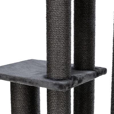 De zijwand is uitgerust met een groot sisal kraboppervlak, ideaal voor het onderhouden van de nagels van jouw kat. Het mandje met wendbaar kussen biedt een gezellige plek om te rusten en kan eenvoudig met de hand gewassen worden. De afneembare hangmat is gevoerd en doorgestikt voor extra comfort, en kan ook gemakkelijk met de hand gewassen worden, zodat jouw kat altijd een schone plek heeft om te relaxen. Gemaakt van hoogwaardig sisal (ø 7 mm) en pluche (400 g/m²).