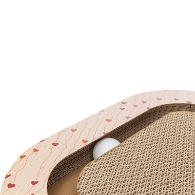 De Trixie Krabplank Hartjes Met Ballen Driehoekig Karton Abrikoos is een functionele krabplank voor katten, uitgevoerd in een vrolijk hartjesthema. De krabplank is gemaakt van stevig karton en biedt een aantrekkelijk oppervlak om te krabben, wat helpt om het natuurlijke krabgedrag te ondersteunen. De geïntegreerde speelballen zorgen voor extra prikkels en nodigen uit tot spel, terwijl het driehoekige ontwerp geschikt is voor gebruik op de vloer of in een favoriete rusthoek.