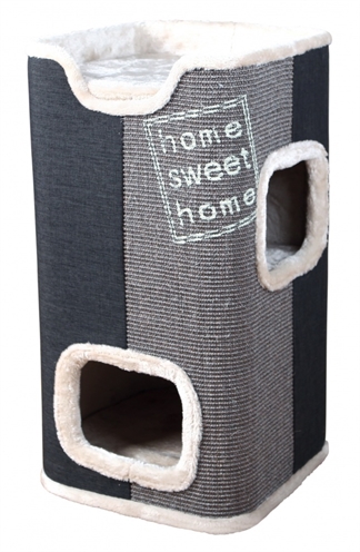 De Trixie Krabton Jorge Antraciet/Grijs/Lichtgrijs 38X38X78 cm is een krabpaal van gewoven stof en pluche met sisal krabvlakken. In de paal zijn twee verdiepingen, elk met een wendbaar kussen. De hoezen van de kussens zijn te wassen in de wasmachine op 30 graden Celsius, de binnenvoering is geschikt voor handwas. De schuilplaatsen zijn geheel voorzien van pluche en de paal is voorzien van een sisal-krabvlak.