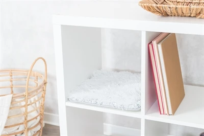 De Trixie Ligmat Harvey Voor Kast Wit/Zwart 38X33 cm is een ligmat voor de kat van zacht pluche, speciaal voor in Ikea Kallax-kasten. Ideaal om de ruimte optimaal te benutten in kleinere ruimtes! Ikea Kallax kasten bevatten veel vakken en ruimte en jouw kat zal de eerste niet zijn die daar graag gebruik van maakt. Met deze Harvey ligmat maak je echt een eigen plekje van zo'n vak! De mat is gevoerd met een dunne schuimrubber vulling voor meer comfort en bekleed met heerlijk zacht pluche van polyester. De onderkant is slipvast om te voorkomen dat de mat de kast in en uitschuift bij het opstaan en opstappen.