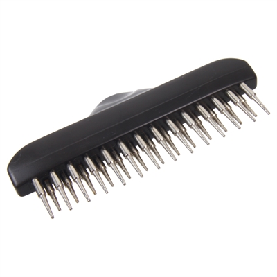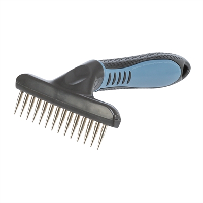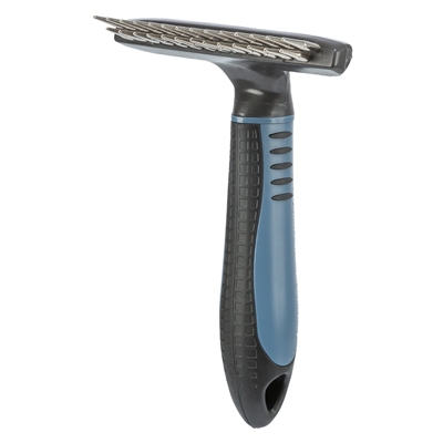 Deze metaalkam is door de dubbele rij vertandingen geschikt voor een nog intensievere verzorging van onderwol van honden met lang haar.
