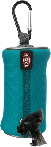 De Trixie Poepzakhouder Neopreen Met 20 Zakjes Assorti is een poepzakjeshouder uit een dispenser van neopreen met 20 poepzakjes. De houder is voorzien van een haak om hem aan de lijn of tas te klikken en hem zo altijd bij de hand te hebben. Deze poepzakjeshouder wordt assorti geleverd in diverse kleuren.
