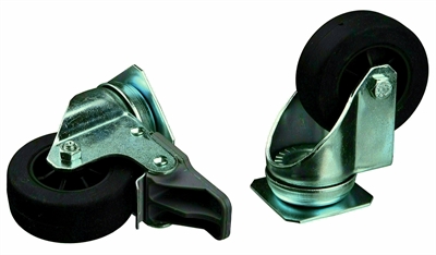 Deze set bestaat uit twee voorwielen die kunnen draaien en die je op de rem kunt zetten. De twee achterwielen staan vast.