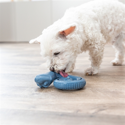 – In de opening kun je snoepjes, brokjes of paté stoppen, die de hond eruit moet zien te krijgen