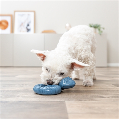 Met deze leuke Snack-slang van Trixie ga je verveling tegen door jouw hond spelenderwijs te belonen. Deze vrolijke snack-slang is gemaakt van thermoplastisch rubber en is open aan de onderzijde. In deze spleetvormige opening kun je verschillende soorten voer of snacks stoppen, zodat de hond spelenderwijs bezig is zijn beloning te krijgen. Door de smalle opening is de slang ook geschikt voor bijvoorbeeld leverworst: de hond is lang bezig alle paté uit de opening te likken. Zo blijft jouw hond lekker bezig, ook als jij er niet bent, en ga je verveling tegen.
