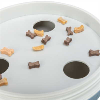 De Trixie Snackbal Hond Kunststof/TPR Blauw 14 cm is een intelligentiespel voor honden in de vorm van een bal met verwijderbaar doolhof. Train de intelligentie van jouw hond met deze snackbal voor honden. Verstop beloningen in de bal en zie hoe jouw hond leert oplossingsgericht te denken om de lekkernijen te pakken te krijgen. De bal heeft een verwijderbaar labyrint én beweegbare opening om de moeilijkheidsgraad aan te passen. De bal kan gewassen worden in de vaatwasser.