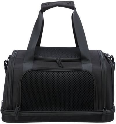 De Trixie Vliegtuigtas Plane Zwart 44X28X25 cm is een handige draagtas voor jouw kat of kleine hond tot 7 kg, speciaal op maat om als handbagage mee te mogen in het vliegtuig. Mag jouw dier met jou mee in de cabine? Bij sommige luchtvaartmaatschappijen hoeven dieren niet perse in het ruim mee, maar mogen zij tot een bepaald gewicht/formaat ook met jou meereizen in de cabine. Deze tas van Trixie is speciaal ontworpen om binnen te toegestane afmetingen voor handbagage bij de meeste luchtvaartmaatschappijen te vallen. De tas is gemaakt van vormvast EVA met hoogwaardig polyester en is geschikt om aan een trolley te bevestigen. Je kunt de tas aan de voor-, zij- en bovenkant openen voor voldoende toegang tot jouw dier. De tas is voorzien van handgrepen, een afneembare schouderriem en een korthouder die voorkomt dat jouw dier uit de tas kan springen. In het buitenvak kun je spullen voor jouzelf of jouw dier opbergen. Bovendien is de bodemplaat gevoerd én waterdicht, en verwijderbaar. Een handige tas om jouw dier als 'handbagage' mee te kunnen nemen in het vliegtuig!