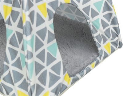 De Trixie Wigwam Voor Hamsters En Degoes Sunny 37X35X37 cm is een slaapplekje voor hamsters en degoes om neer te zetten in de kooi of ren. Dit vrolijke holletje zal de favoriete slaapplek zijn van jouw hamster of degoe. Ze de wigwam op een fijn plekje waar jouw diertje graag slaapt. Het lekkere kussen beschermt het beestje tegen kou van de grond. De vulling van foam maakt dat het kussen comfortabel ligt en de hoes kan gewassen worden op 40 graden Celsius. De onderkant is voorzien van een antislip-laag van rubber. Het vrolijke printje maakt het helemaal af.