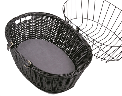 Trixie Wilgen Fietsmand Voorop Zwart Met Kussen En Kap 50X35X41 cm