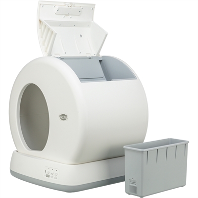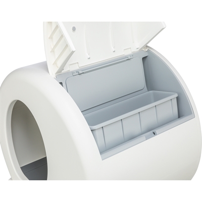 De Trixie Zelfreinigende Kattenbak Kunststof Wit 53X52X55,5 cm is een handige kattenbak die door te draaien automatisch de kattenbak schoon houdt. Deze automatische, zelfreinigende kattenbak is dé uitkomst voor elk kattenbaasje! De trommel draait automatisch na gebruik. Het schoonmaakproces stopt automatisch als jouw kat aankomt. Gebruik klontvormend kattengrit in deze kattenbak. Door het draaien vallen vaste deeltjes, zoals uitwerpselen en klompjes kattengrit met plas, in de afvalbak. De afvalbak kan gebruikt worden met of zonder vuilniszak. De bediening en het schoonmaken van de trommel is zeer eenvoudig.